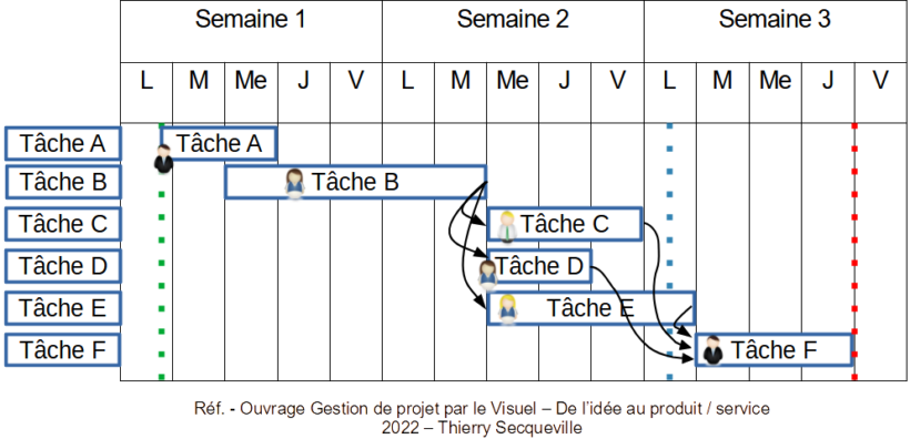 - Difficilement exploitable en 1 seule vue pour des projets longs avec beaucoup de tâches